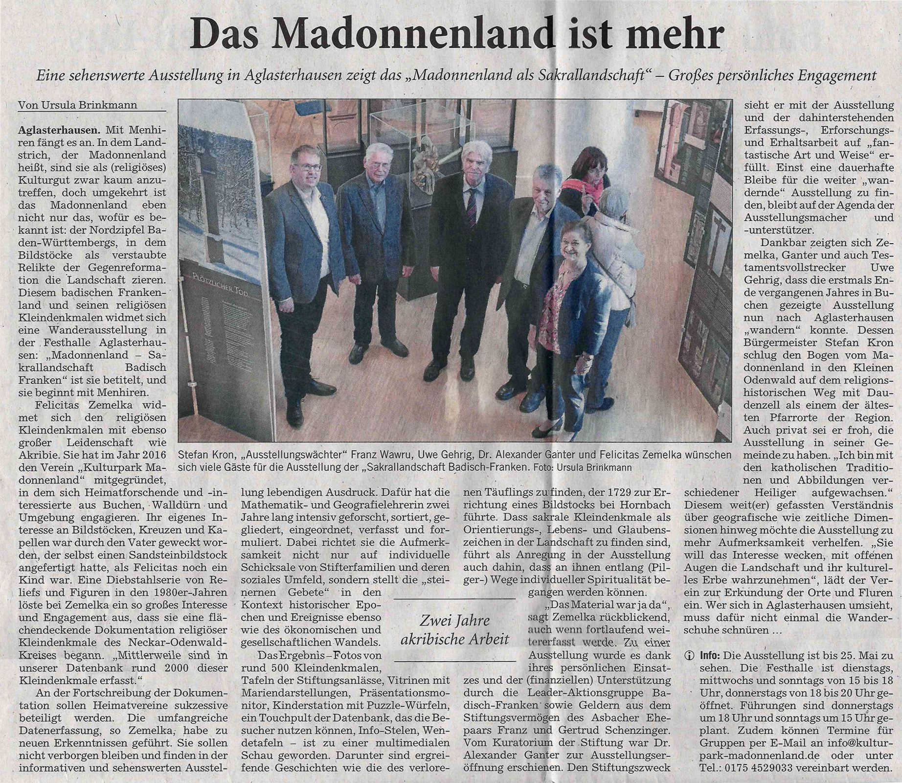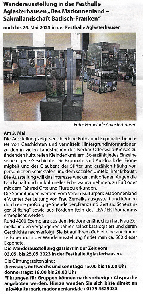 Die Gemeinde Aglasterhausen veröffentlicht ihren Bericht zur Ausstellungseröffnung unter